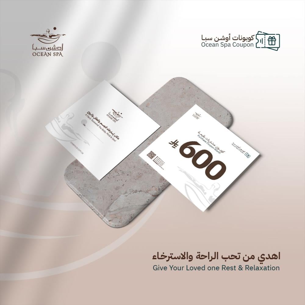 كوبون مشتريات بقيمة (600) ريال من أوشن سبا – تذكرة العناية الفاخرة